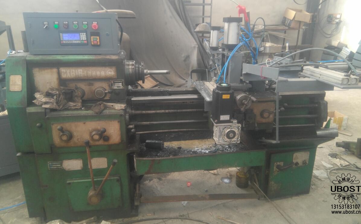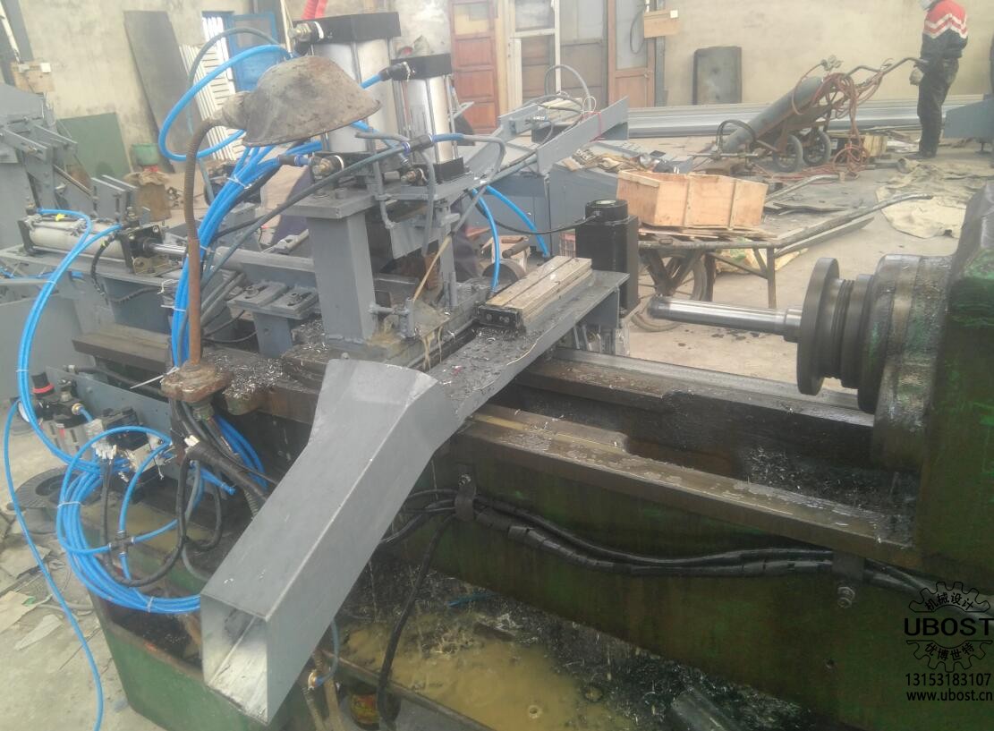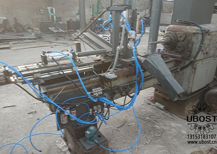 普車改自動鉆孔機(型號:UCG01) 普車改自動鉆孔機是由濟南優(yōu)博世特(UBOST)機械設計有限公司根據(jù)客戶要求自行設計制造的自動化車削送料設備。
